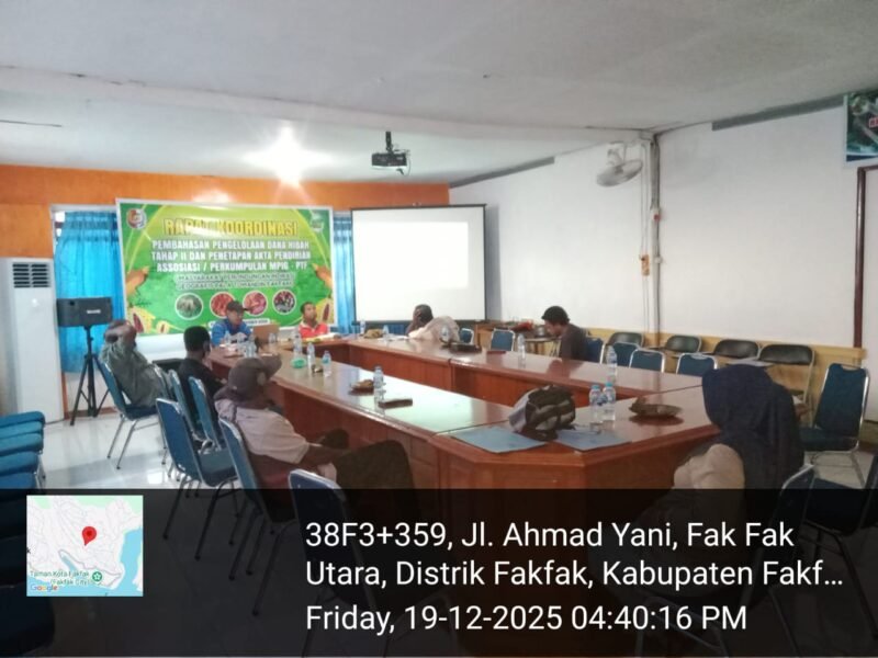 papuatengah.tagarutama.com, Fakfak – Masyarakat Perlindungan Indikasi Geografis Pala Tomandin Fakfak (MPIG–PTF) menggelar Rapat Evaluasi Pemanfaatan Dana Hibah Tahun 2025 di Ruang Rapat Tomandin, Dinas Perkebunan Kabupaten Fakfak, Jumat (19/12/2025).